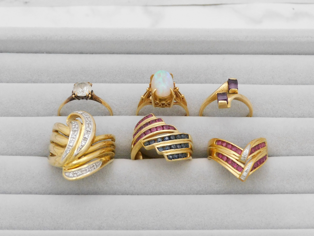 K18リングを中心に、K18とプラチナ900を組み合わせたコンビリングもお持ちいただきました。もちろんダイヤモンドやルビーなど、色石部分も含めて査定・お買取りしております♪