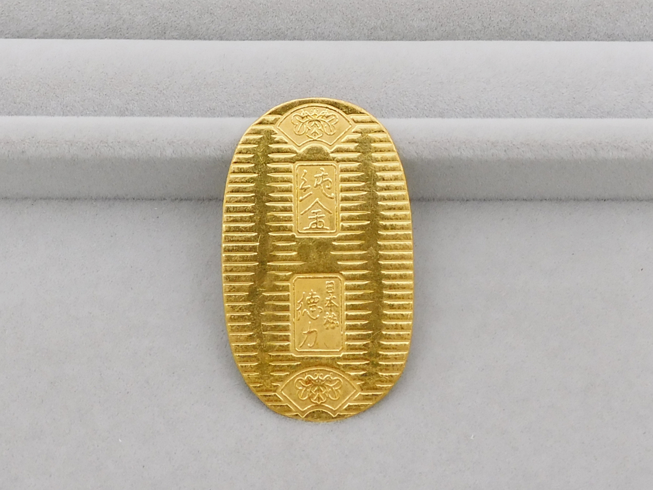 かつて貨幣として流通していた小判をモチーフとしたもので、こちらは近年になり製造されたお品です。記念行事などの際に小判型の金製品が作られることがあり、Tamakiでもこれまでにたくさんお買取りしております。