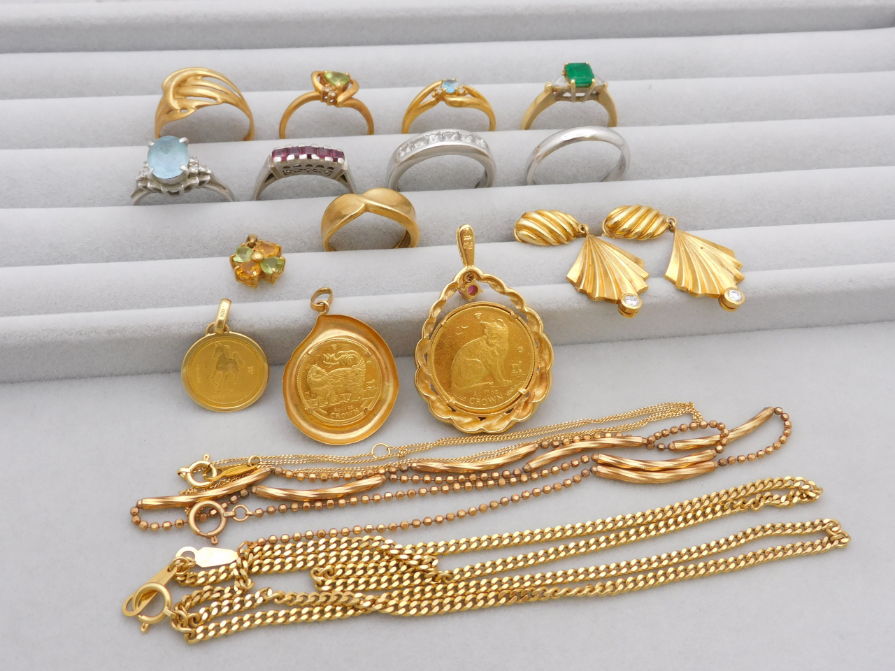 今回ご紹介するお買取り品は、イギリスのマン島キャット金貨のペンダントや、K18リングにネックレス、プラチナジュエリーなど♪ マン島キャット金貨は純金製で、猫の絵柄が毎年変わることでも有名なコインです。