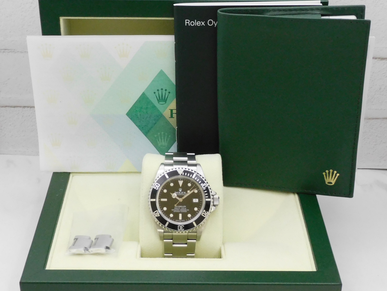 シードゥエラーの第3世代「16600」は1989年から2008年まで、20年近く製造されていたロングセラーモデルです。今回お売りいただいたお品はモデルライフ終盤に近い年代で、ケースやブレスレットに多少の使用感はございますが、製造年を考えると、良好な状態です。ご購入時の箱や保証書、ブレスレットの余りコマなど付属品もきれいに残っておりましたので、最大限の高額査定にてお買取りさせていただきました♪