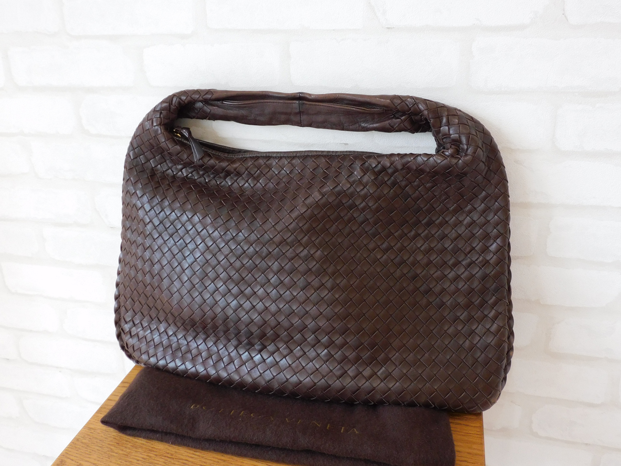 ボッテガ・ヴェネタのアイコンである編み込みレザー「イントレチャート」のショルダーバッグをお買取りしました!柔らかな素材感で、使いやすさも魅力の定番モデルです♪