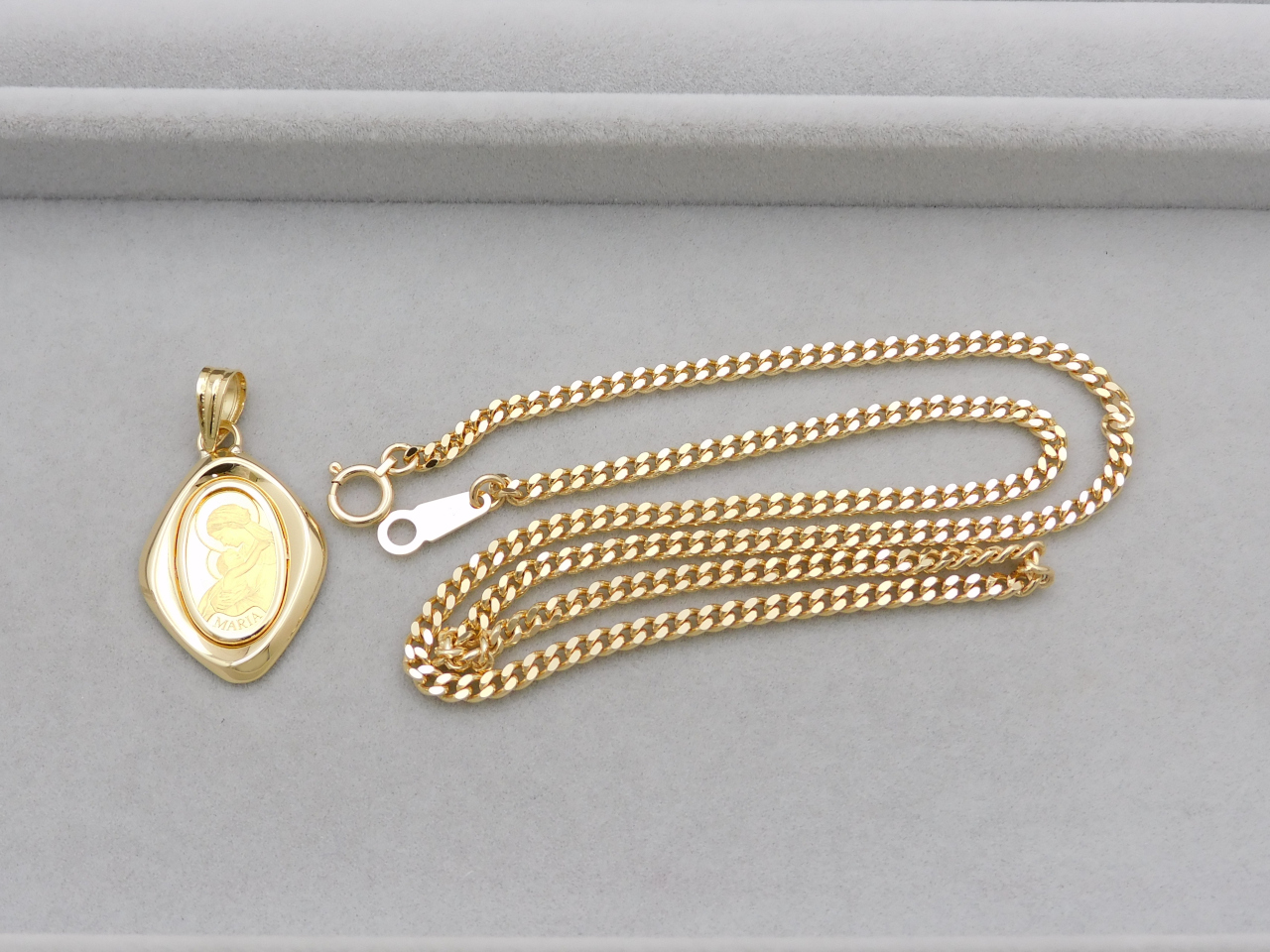 そしてこちらのお品物は、K18枠にオーバル型の純金がセットされたペンダントと、K18チェーンから成るネックレス。ペンダントの査定額は、純金とK18それぞれの金額の合計になります。