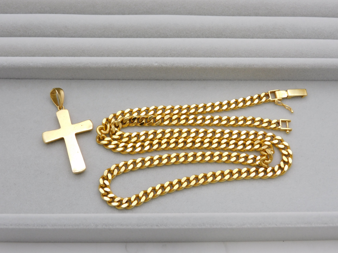 今回のブログでは、最近お売りいただいたお品をピックアップしてご紹介します。最初にご紹介するお品は、K18喜平ネックレスと、同じくK18素材のクロスペンダント。重さは合計60グラムを超えており、買取額も高額となったため、お客様にもお喜びいただけました!