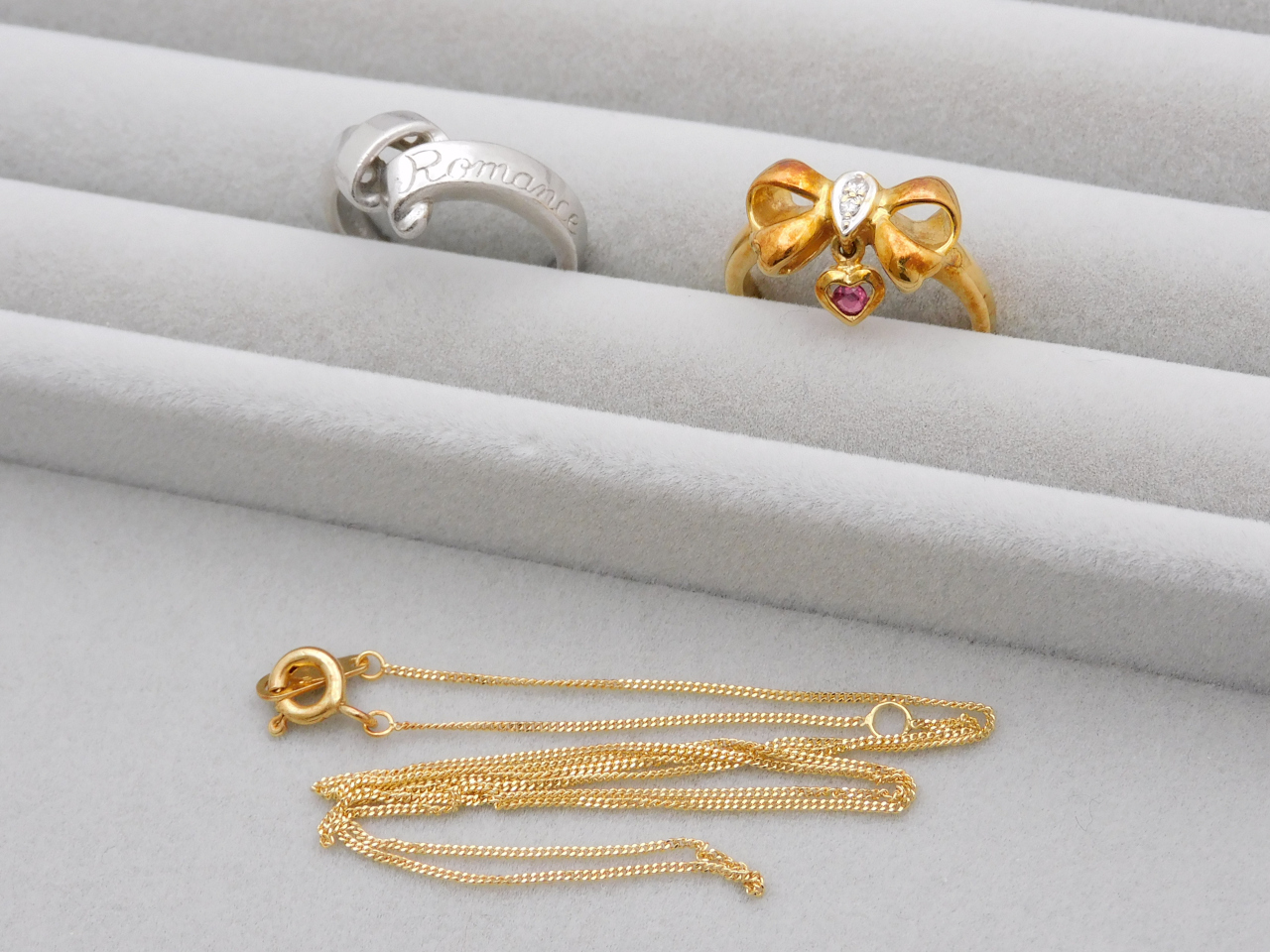 続いてご紹介するお品は、K18リングやネックレスに、プラチナ900のリングなど。実はプラチナの価格もかなり高値となっており、お売りいただくのに良い状況です♪
