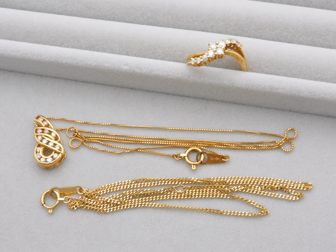 最後にご紹介するお品は、K18リングとネックレス!ダイヤモンド付きのお品もお持ちいただきましたので、ダイヤの価値もプラスで計算してお買取りさせていただきました♪